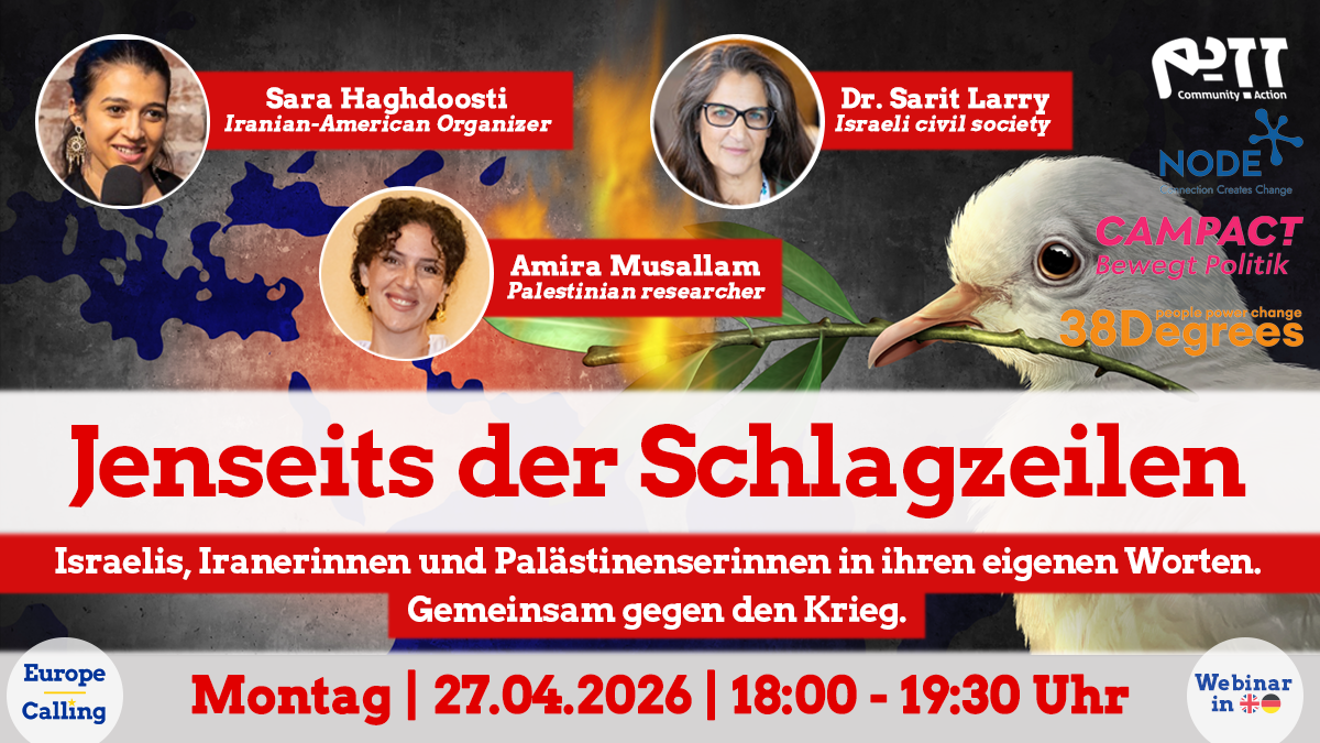 „Jenseits der Schlagzeilen: Israelis, Iranerinnen und Palästinenserinnen in ihren eigenen Worten. Gemeinsam gegen den Krieg.“